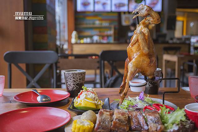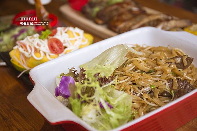 一份芒果沙拉,蟹煲,果木烤鸡,榴莲披萨,清炒秋葵,炒河粉等七八个菜,价格也不贵,人均50-100.