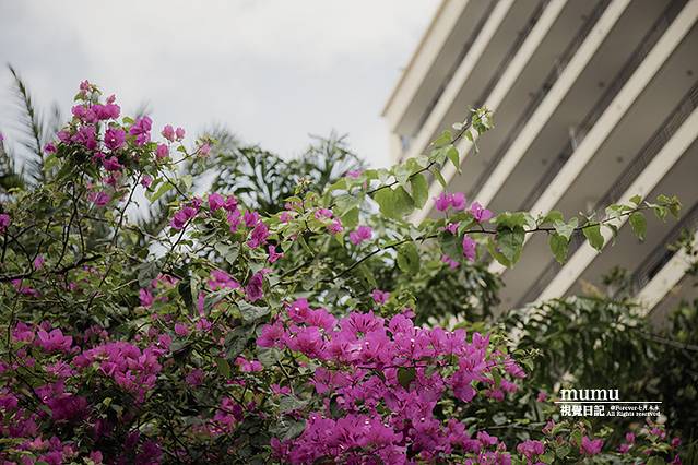 从酒店到三亚湾的海滩非常近,步行10分钟左右就要了。沿途,墙角的三角梅长得正艳。三角梅是海南的市花,“没有真爱是一种悲伤”,这是三角梅的花语,读到这句话,让人微微一颤。三角梅花苞薄如纸片,其形虽大,却有些弱不经风,又有“纸花之称”。只是这大片看似肆意生长的小花,明媚而忧伤着。