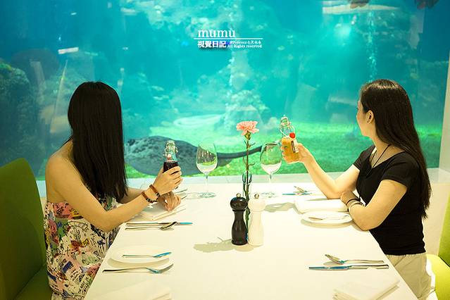 另一侧便是超大的水族馆,餐厅就设于水族馆旁边,边就餐边可以欣赏浪漫无比的海洋世界。很多宝宝不会游泳,不敢下水,而海洋餐厅极大的满足了孩子对于未知的海洋世界好奇心。透过玻璃,你可以清晰得看到多达30多种4000多海洋生物,成群的鱼儿自由欢畅,笨拙的海龟挥舞着爪子,连魔鬼鱼都扑闪扑闪着睁大着绿豆似的眼睛,来来回回。