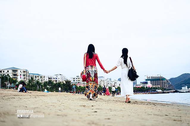吃完饭,我们决定去三亚湾转转,至于看夕阳,完全看人品了。