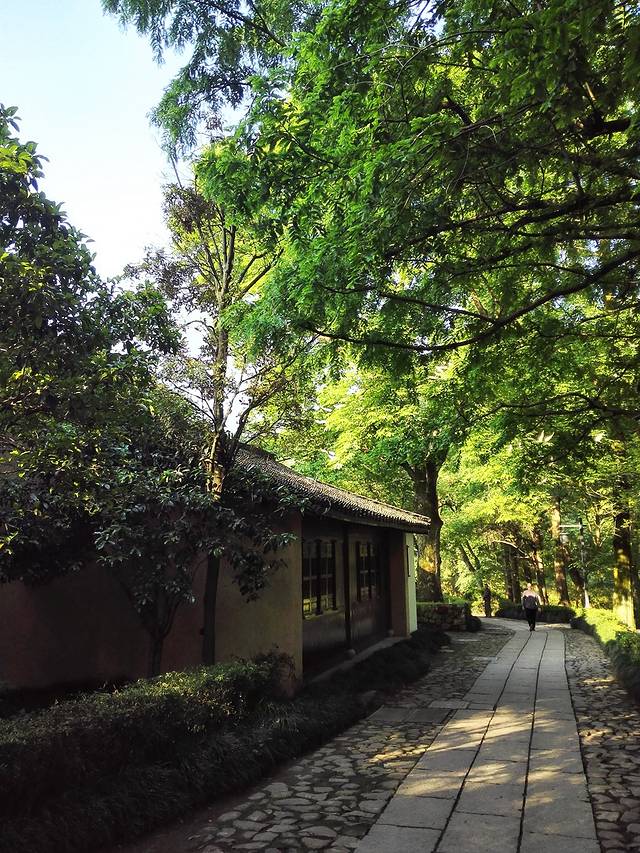 因为不是节假日,而且我到这也已是下午时分,所以一路上并没有多少的游客,唯有路两旁无数高耸的数和竹海与我为伴。“梅将铁作骨,竹以虚为心”以竹为邻,可常常提醒修行者,万般皆是虚妄,当常怀“空”心。