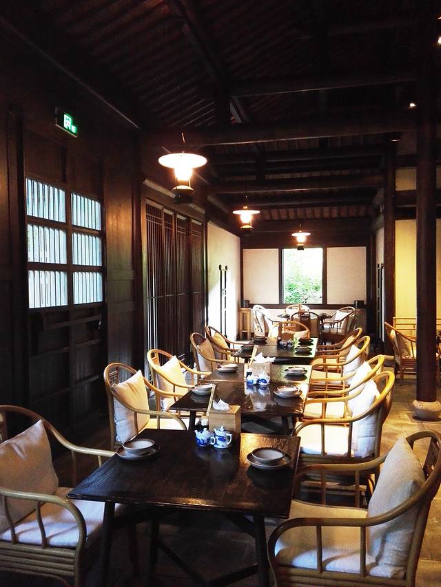 走进一家餐馆,里面的装修风格与古村也是非常的相似,简朴的桌椅在白炽灯微黄色灯光的照射下显得更加的古香古色。