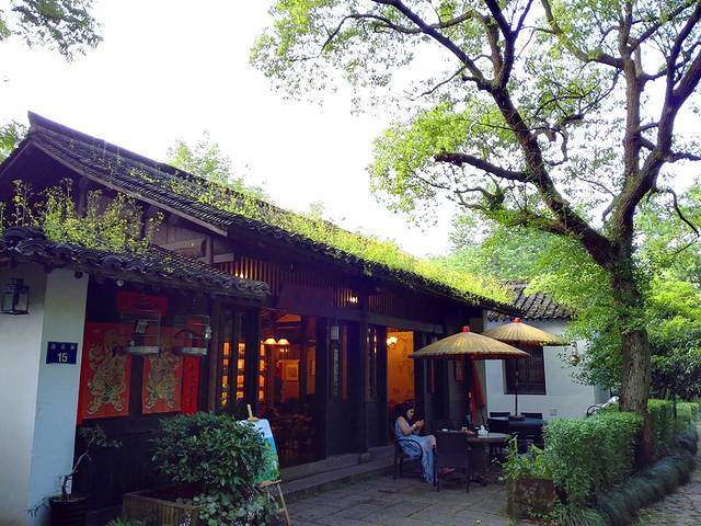 苍老崎岖的古树旁,是一家茶馆,馆内柔柔的灯光似乎在呼唤着过路的行人,进去喝杯茶小憩一下。