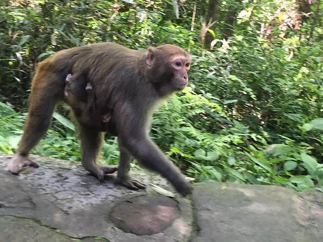 金鞭溪路上有很多野猴,这些猴子非常非常聪明,记得走这条路的时候,不要把食物露在外面,也不要用手掏口袋或者包包,不然猴子就会扑上来啦