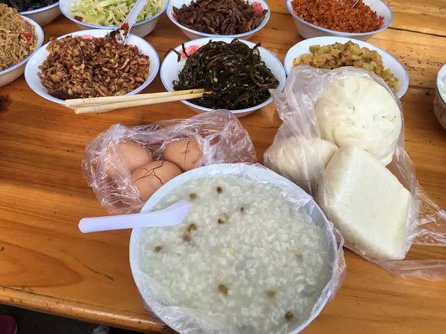 就就在客栈门口吃的早餐张家界早餐很有特点,二十几个小菜随便吃,粥一人三块钱,不限量,鸡蛋一块五一个,馒头或者包子一块钱一个,还是很亲民的。