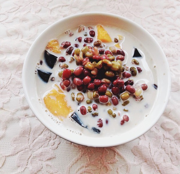 椰奶里放红豆绿豆水果龟苓膏等等等等,很美味