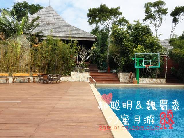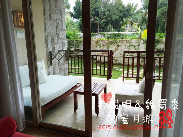 蜜月房是在一楼,阳台出去是一个小院子,院子外面就是泳池。