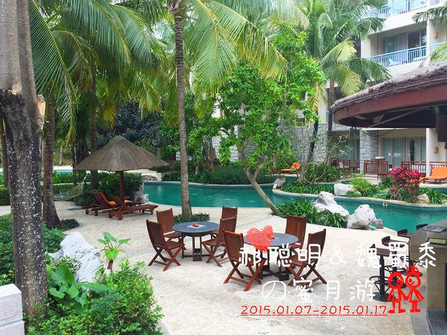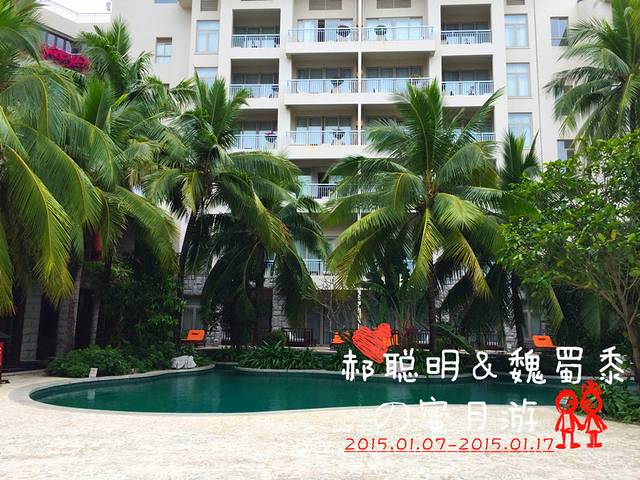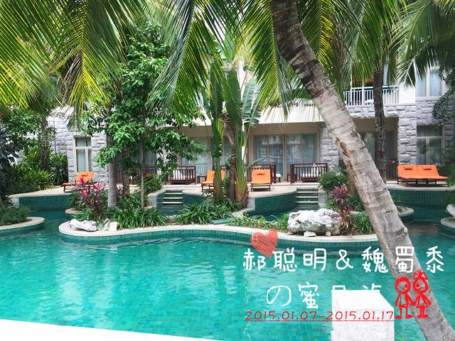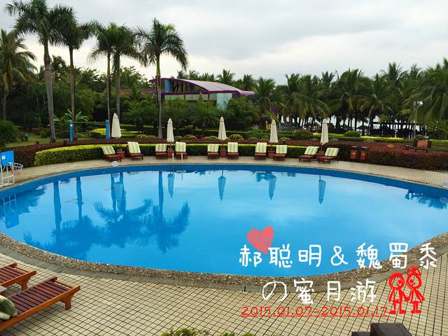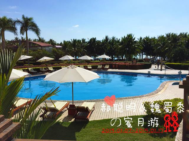 房间出来走几步就是泳池,因为去的季节是三亚最冷的时候,