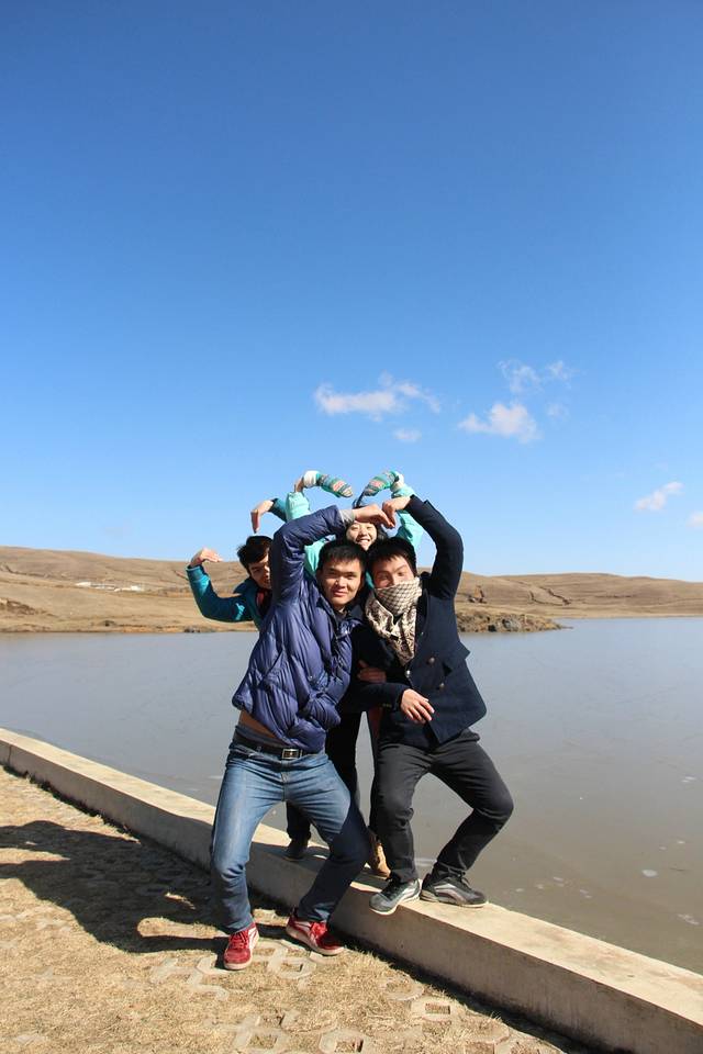 小伙伴,背后就是大海子,湖面已经结了一层冰,云南没有海,所以把湖都叫做海