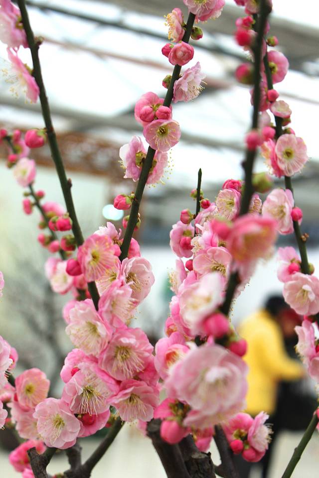 各色各样的梅花一个个的散布在会场里,独自安静的待在那供人观赏。