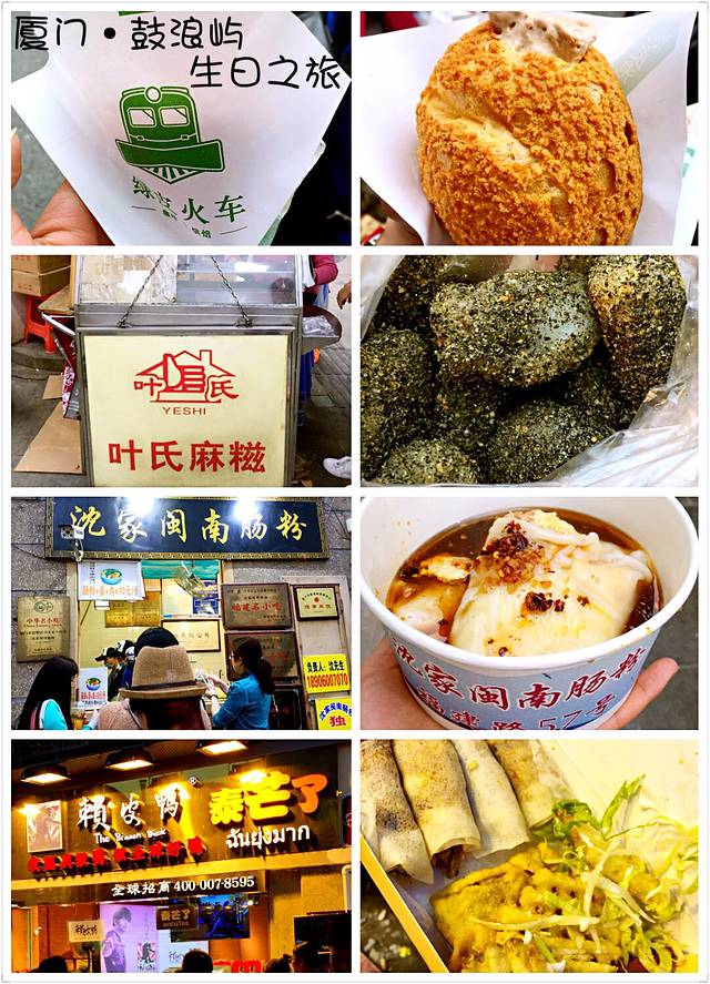 绿皮火车脆皮泡芙、叶氏糍粑、沈家闽南肠粉、赖皮鸭、煎饼果子、张三疯、林氏鱼丸、林记鱼丸、爆浆鱿鱼、甜寇、小马哥起司马铃薯、瞎扯蛋、沙茶面、
