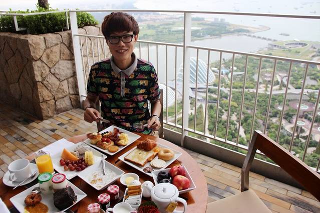 休息了一会儿,来到金沙酒店顶楼空中花园的THE CLUB餐厅,吃早餐。