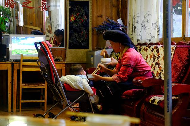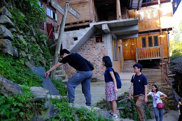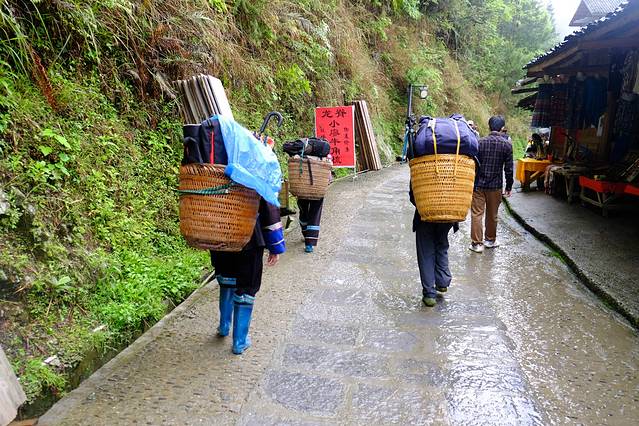 看不到梯田,我们只能逛逛平安街的街道。比起背包客更喜欢去的大寨,平安寨商业化气息相对浓重,商铺、拉客、标准化纪念品、人力轿、以及YHA青旅……一应俱全。▼