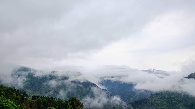 第二天上午,龙脊下起暴雨。很早起了床的su冲进房间:“快出来看!快出来看!好漂亮!”我外套也没披就跑了出去,果然是很漂亮,云雾缭绕在山顶上,远处的民居若隐若现。不过后果是冷到流鼻涕回来……▼