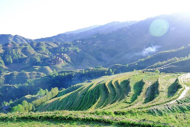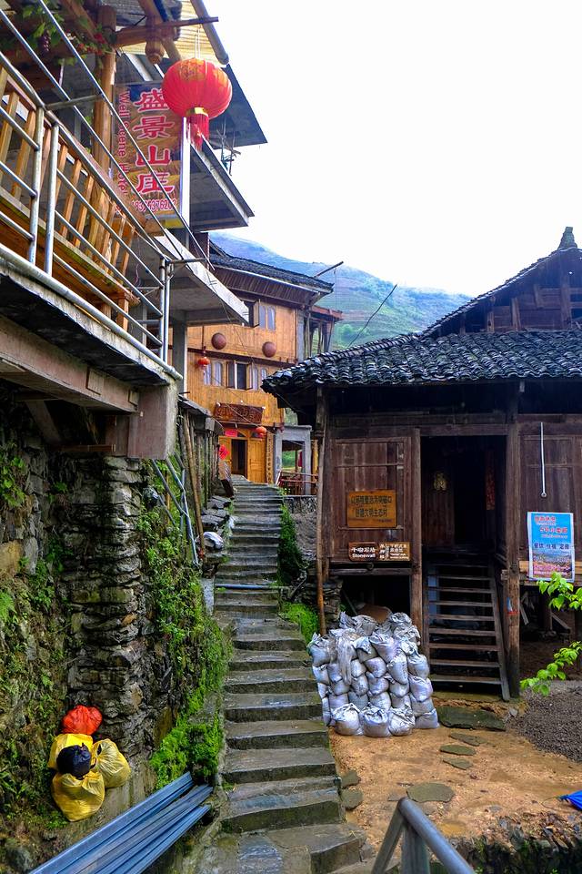 我们在龙脊梯田那晚住在了景留人客栈。景留人客栈老板超好,会亲自来接我们上山。恩是的没错,要爬山……老板一边健步如飞在前面跟我们说这话不带喘的,我们一边半死不活地在后面跟着……