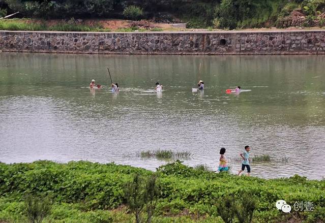 河道平缓,漂流便也悠闲很多。两岸山上绿树葱郁,水清而绿,忙里偷闲感受两岸原生态的自然风光,看青山戏绿水,刺激与美景共存。