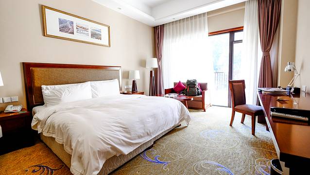 在海螺沟泡温泉实际上可以选择的比较靠谱的地方就只有两个,一是二号营地,再一个就是贡嘎神汤温泉酒店,二号营地的情况前边说过了,我觉得虽然风景好,但是环境更重要,所以我选择了贡嘎神汤温泉,这也是当地唯一一家五星级酒店,其实房间设施装修之类的都和那些品牌五星酒店有比较大的差距,但至少干净舒服,关键是温泉很棒。