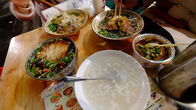 各种脑花、各种粉、各种面,菠萝饭、小汤圆、烤猪蹄,更多的我都叫不出名字,总之点一大桌子甩开腮帮子招呼吧!唯一要担心的就是确实狠辣,小心上火。