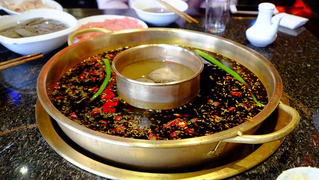 来成都不能不吃火锅,校花妹妹推荐的巴蜀大宅门,这实际上是属于偏重庆派的火锅,成都火锅跟重庆火锅最大的区别我觉得就是成都更精致一点,重庆更豪放,而且成都似乎不像重庆那么辣。巴蜀大宅门是连锁店,我实在记不住我去的这家是不是清江东路店了,想去的话大家可以手机上搜一下,很好找。