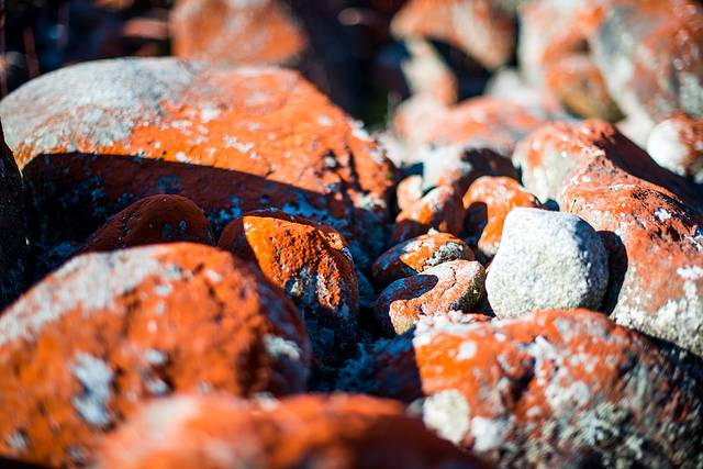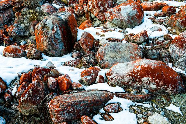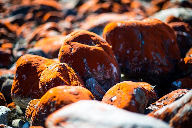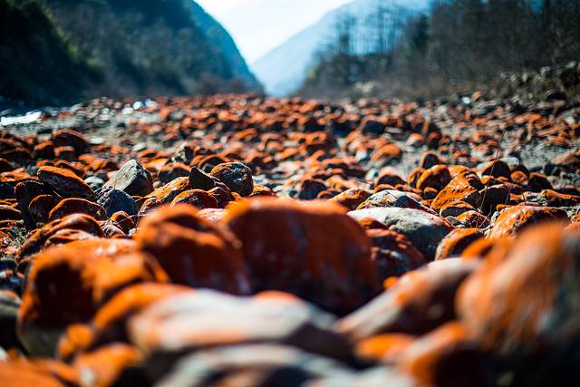 红石滩就是山沟里的石头都长了一层红色类似苔藓的东西,照片都是后期调过饱和度的,实际看着没这么红,只有在日落的时候直接目视才会显得更红一点儿。