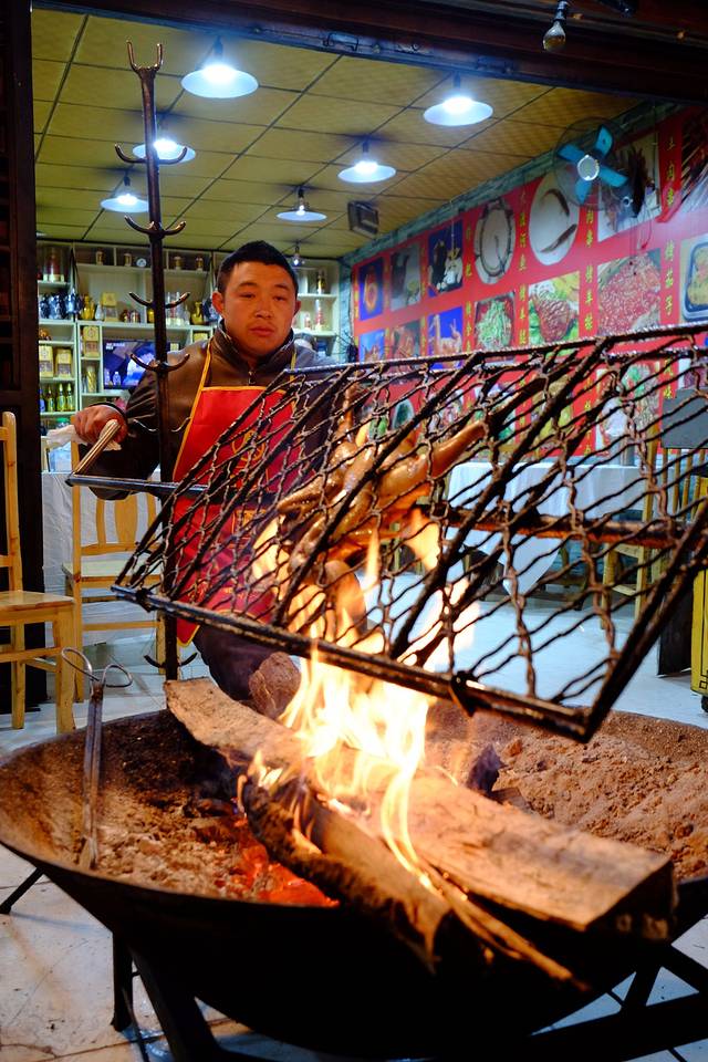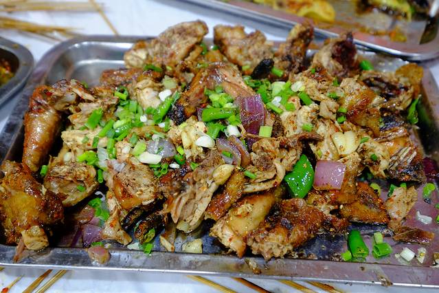 这就是烤鸡成品,人多的话可以点一只尝尝,人少就别点了,吃不了浪费,也并没有多好吃。当然,我带着吃货来的,俩人点一只鸡根本不算事儿,我就吃了两三块儿,剩下的被校花同学给包圆儿了,我就不明白这么能吃她怎么就吃不胖呢?