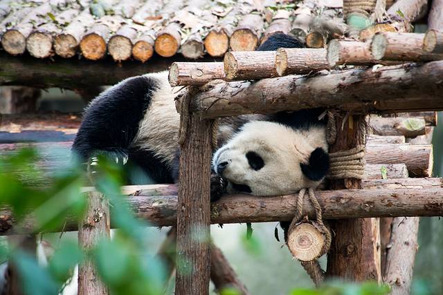 国宝们每天的生活基本上就是吃了睡睡了吃,实在无聊了就到处溜达溜达巡视一下,小一点的熊猫们每天还会滚在一起打打架什么的。