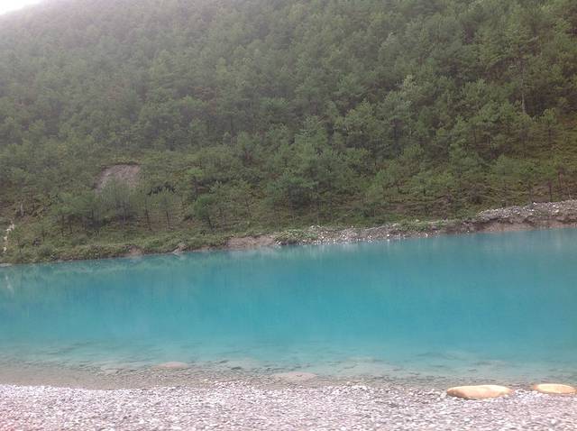 半山下来又去了蓝月谷,平静的湖水呈湛蓝色,像一块块蓝宝石。真是奇妙的景象。