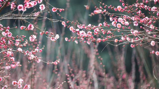 东湖梅园(武汉东湖磨山梅园)为全国四大梅园之首,既是中国梅花研究中心所在地、中国梅文化馆所在地,又是全国著名的赏梅胜地,冠绝全球。东湖梅园创建于1956年,目前面积已扩大到800余亩,定植梅树2万余株。梅园位于湖北省武汉市东湖风景名胜区磨山景区南麓,三面临水,回环错落,自成一体,周围有劲松修竹掩映,自然成为“岁寒三友”景观,是我国梅园胜地之一。这里山青水绿,风景秀丽。早春时节,梅花盛开,繁花似锦,暗香四溢,前来赏梅、咏梅、画梅、摄梅的中外游人络绎不绝。东湖梅园的园林景致可谓“天然去雕饰”,它依山环水,在地理位置上得天独厚。在园中,既可欣赏到烟波浩渺、水鸥点点的东湖湖光,又能领略到高耸着楚天台和朱碑亭的磨山山色。