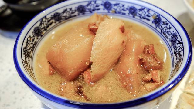 四季美汤包也是武汉当地特色,我也是在临回北京前才发现了一家开门的,这地方汤包真的不好吃,但是炸酱面有点儿意思,跟北京版完全不一样,还挺好吃的。我看店里菜单上写着有排骨莲藕汤和热干面,但是我去的时候人家只卖炸酱面和汤包,不知道是不是过年的原因。