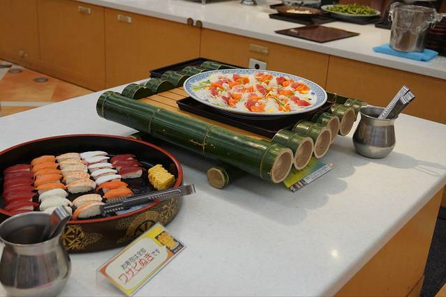 入住我们事先定好的旅馆,房间是和洋式的,大小很满意,日本的大多旅馆都提供和式睡衣自己可以不用带,旅客们都会穿着他们在旅店范围内活动的。我们这次定的旅馆是包早晚饭的,日本的旅馆都不包中午饭。都是自助餐,种类很多,味道也不错。
