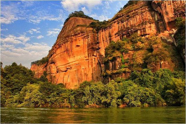 看到赤壁丹崖的时候,正巧夕阳西下,在阳光的照耀下,显得如此夺目亮眼。高三读地理的时候,经常碰见“丹霞地貌”这一词汇,还得去记住它的地貌特征,没想到亲眼见到丹霞地貌这样美丽的情景,那些枯涩乏味的知识,突然间就生动了起来。