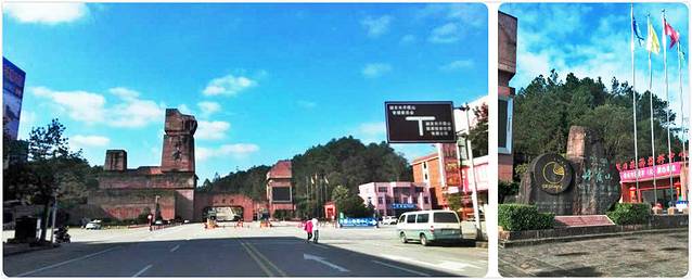 在阳元山景区下车后,我们走过了大桥,桥底下流淌着风光无限的锦江。路过水上丹霞的门口,给大家看看正规的购票点,千万不要轻信其他人向你兜售的票。注意了游艇和竹筏不是同一个概念。