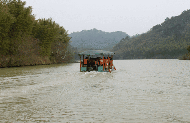竹筏,由阳元山景区大门进入,进入阳元山景区后可以等待竹筏观光车载我们到竹筏码头(如果车没来,可以问工作人员要电话,打电话即可)。接着我们就遇到了一位韩国大叔!OMG!(为什么不是韩国偶吧呢,桑心!)大叔英文不能达到流畅沟通的水平,于是小编只好发挥韩剧诸如“偶吧卡机嘛”“撒浪嘿哟”等水准,加上中英文手势等来进行亲切交流。