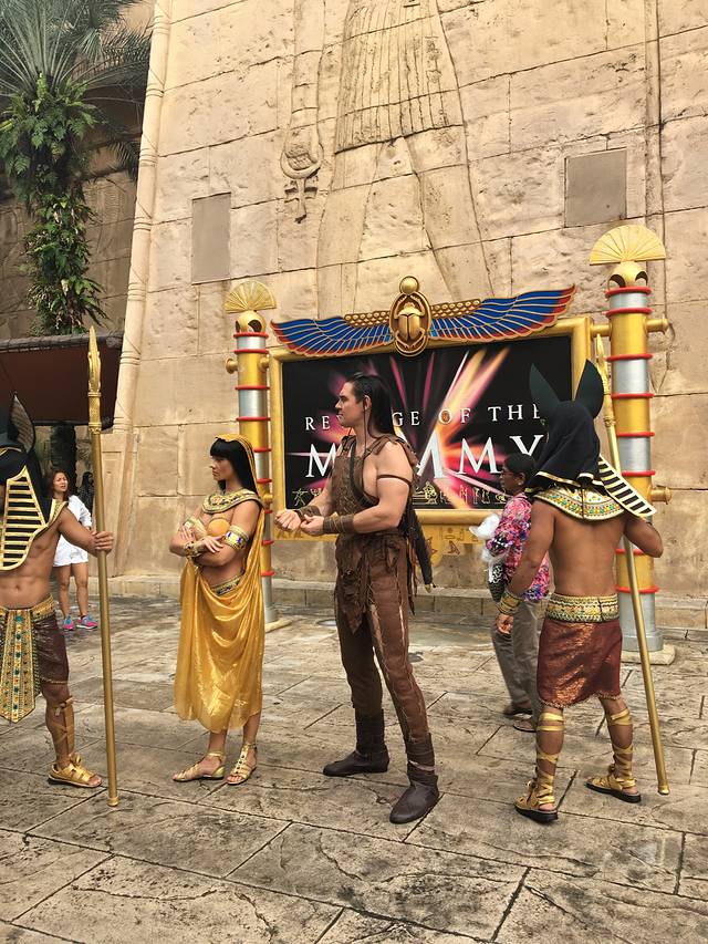 提前买了快捷票,太明智,周五10:00开门进去人还比较少,因为快捷票只能使用一次,上午都没舍得用,几乎都在15分钟内玩上了,变形金刚、过山车红线(过山车分为红线正着坐、蓝线挂着坐,快捷票只能使用一条线),古埃及排队挺长的也最好玩,使用了快捷票,有地方寄包45分钟内免费,上午把大半重点推荐的都玩遍了,中午在吃了点园内最便宜的汉堡套餐,13:30开始继续奋战,新加坡的阵雨基本上都在下午14:00-15:00,很多羡慕都因为下雨暂停,不过很快就开放了,下午开始队伍陆续长了,快捷票不能浪费,过山车蓝线、变形金刚又坐了一边……不得不说新加坡人确实都很有效率,这也是之前皇包车司机有跟我们介绍过的,换作国内的迪士尼估计每个项目要排上一两个小时