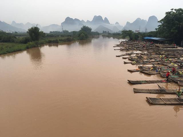 第二天一早,我们到了遇龙河,因为时间的原因,没能再漂流,由于刚下过雨,河水混浊,发黄,但风景依然如画!