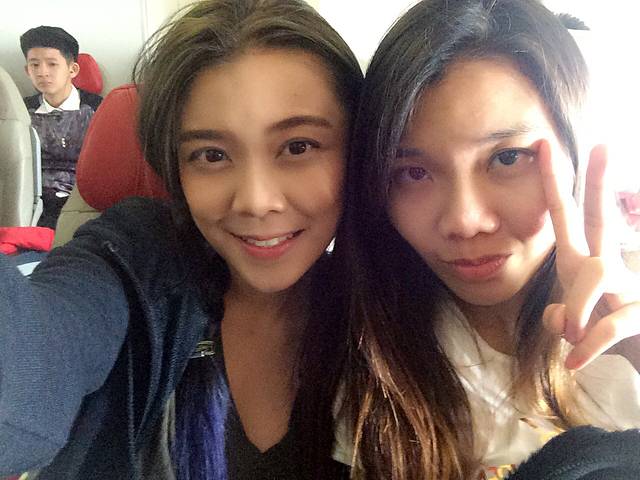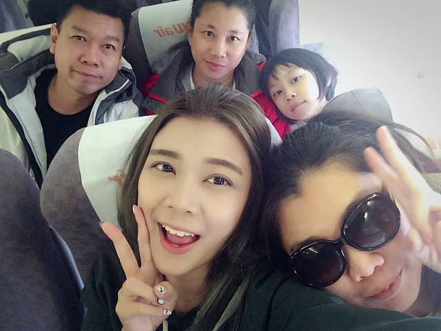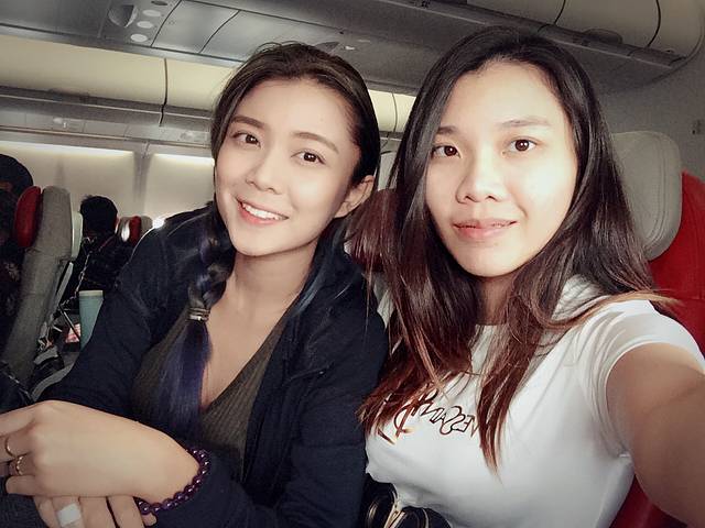 飛機上我們小瓜,小妹“萱”和二妹“Cally”就抱在一起睡