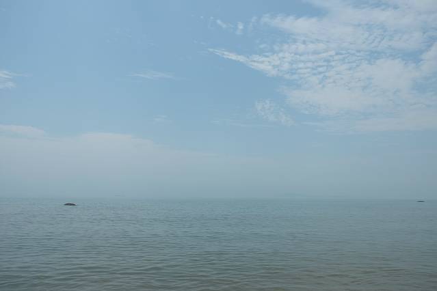 干净的天空,干净的海水,干净的沙滩,干净的空气,美丽的地方。在这里听不见嘈杂的人声,汽车声,这里只有悦耳的海声与风声