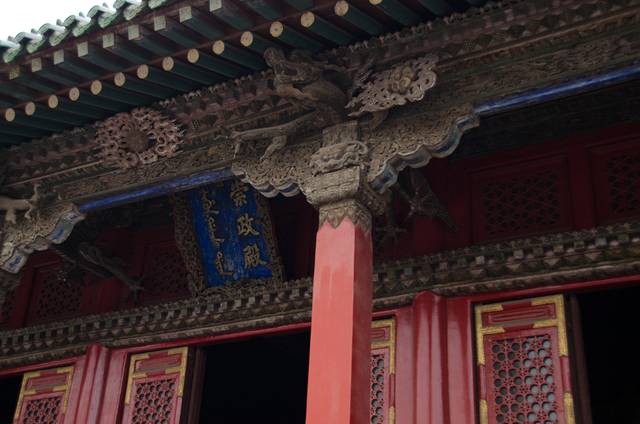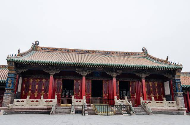 过了大清门,看到的主殿便是崇政殿,虽然看上去也就算得上是北京故宫主殿的迷你版,但是气势依旧如虹。雕梁刻柱,琉璃屋顶,朱红门窗,神兽守脊,飞龙盘柱,这等气宇轩昂的气魄瞬间就把几百年前的君威、皇权以及繁荣体现得淋漓尽致。