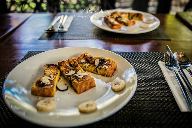 因我而看,这家酒店更适合旅居的慢生活。早餐区域,是隔壁的咖啡厅,一大早起床在早餐区遇到的全都是外国人,除了我们。