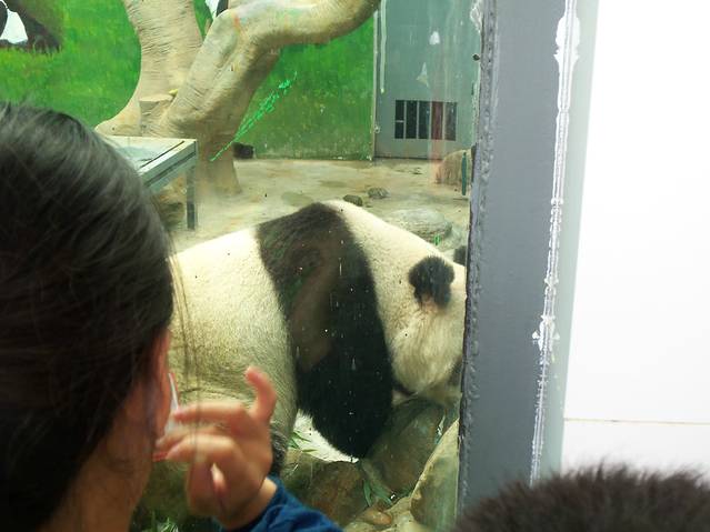 首先映入眼帘是大大的标语,国人的习惯,热情的感觉。顺着大路朝前走,两旁生意还不少了,购买了门票,看见有小火车招呼做,也就做了,也拉风不,可不是免费了,当初也没知道有多远,把我们送到景区门口,排队换乘大客车观光,近距离看散养动物,这也是我和孩子第一次,特别兴奋。车上讲解员不停述说,我和孩子则聚精会神看车窗外动物并摄像了,什么老虎,狮子,豹子等等,看的津津有味,高兴极了,动物们懒洋洋的,扒着,躺着,眯着,睡着,情景各一,好象不怕似的,好好玩了,这可是人生头次这样看大型猛禽动物,难得了。估计十来分钟观赏结束了,我们依稀舍不得。下车后,又换乘小火车开始真正的圈养之行,叮咚 叮咚,小火车行驶在马路上,格外引人注目,每站上下,不能重复。先去看熊猫馆,可爱的东东太好玩了,大人孩子都逗着玩了, 憨态可掬,笨手笨脚,动作百态,愉快爽 了。海洋馆简直是海底世界,形形色色,五彩斑斓,花花绿绿,形态各一,小鱼儿们来回闲游,自由自在,潇洒生活,什么海草,海澡,不知名生物太多,数也数不清,看不过来,重塑海底仿生态乐园。
