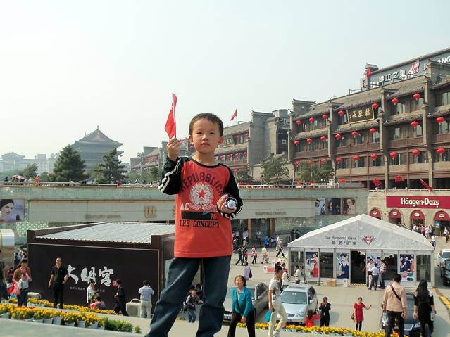 早上4点多起床,洗漱,去火车站赶车,经安康换乘到西安,到西安近12点了,中午阳光异常耀眼,人有点发热,出火车站不知方向,太大了,迷失了,询问路人到钟鼓楼下车,经地下通道,七拐八拐按指示标牌才找到回民街。地下通道异常大,把四面八方道路都相联起来,减少行走路程,方便大家通行,做的很棒,相当好,很是喜欢。回民街旁边就是钟鼓楼,人挤人,小旅馆很多,根据个人需要选择,走到头是什么街忘记,也有不少住宿,不要操心怕没有住的。在回民街中段选了一家,安静,环境尚可,凑和吧,放下行李第一站,陕西博物馆,可为了找车站和小孩跑了不少弯路问了不少人,每人说法不一样,所以要注意了,好不容易找到做车到哪,吗了,人特多了,排队到老时了,看不行准备掏钱20元买特殊票,没想到也是站队,限人数进入,太有名气了,估计时间不允许干脆不看了明天再来,留个影之后,做车去看什么又是亚洲第一喷泉,到处都是否第一,难道不叫第一不行了,会屎了,顺便看大唐芙蓉园,大慈恩寺等景点,黄金周人的确多,到处都是人,由其是看喷泉,占地面积不小,采用循环水,大呼小叫,害的保安来回维持,不过是比较好看了,在这个特殊时期,心中荡漾。广场周围游客众多,陕西民俗大观园,风景很好,环境优美,人文景观也不错,绿化也很美。大唐芙蓉园就是个植物园,根据自己选择而行了,大慈恩寺经典寺庙,可以瞧瞧啊,