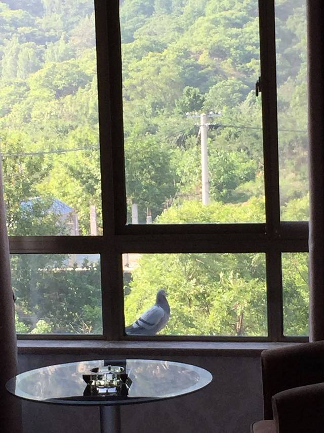 美美的睡到自然醒,打开窗户看见一个鸽子停在窗前,一片祥和景象。