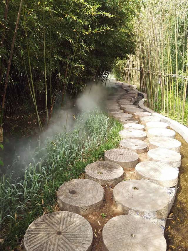 彩虹谷为北方人营造了一种江南风情的"雨文化",沿着彩虹门走进的是一幅江北少见的雨中胜景,雨中撑伞蹬石是彩虹谷的经典之作,感受其中的神秘和向往,外边阳光灿烂,里边小雨绵绵,别有一番景致。