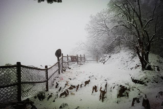 到了雷洞坪买好车票,发现时间还很早,于是决定弥补昨天的遗憾,去看看雪里的猴子,顺便再多拍点雪的照片,成都真是很难见到雪花啊!