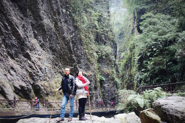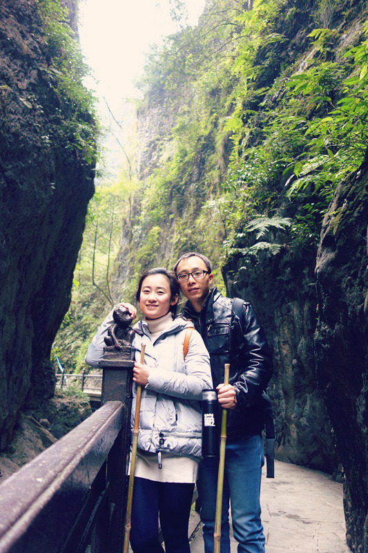 在清音阁这个地方有2个方向可以选择,一个方向是到一线天+生态猴区,一个方向是到万年寺,我们的选择是先去生态猴区,再原路返回去万年寺!友情提醒,可以在山下买一根竹竿一元钱!可以方便爬山和防滑,还能驱赶猴子,但是千万不要去招惹他们,另外还有防滑锁丁,在山下可以买好,5元一副!