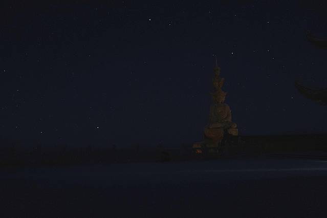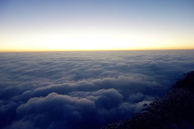 第二天一早起来,出来之后发现漫天繁星啊,好久没有看到这么透彻的星空了,瞬间觉得今天的日出有望了,由于天黑,我们又忘记点手电了,就只有跟着一队人一起登金顶!