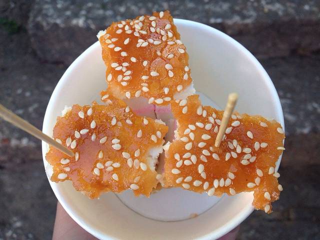 一来到古城,我们就去美食街吃东西了,这两个都是特色小吃,一个什么鸟蛋,一个叫石板花,味道还可以,去的伙伴可以尝尝,美食街吃的都比较贵!