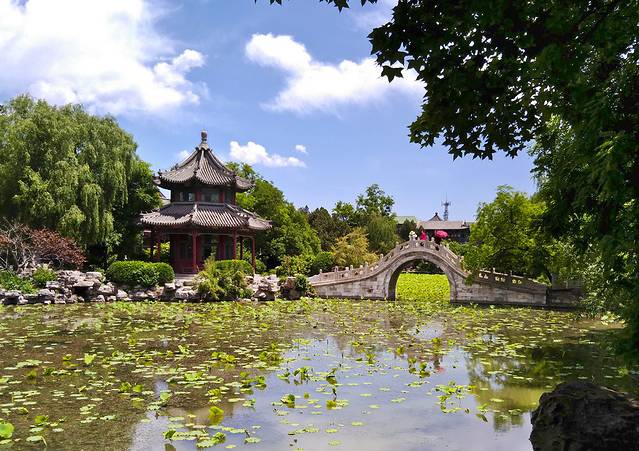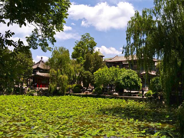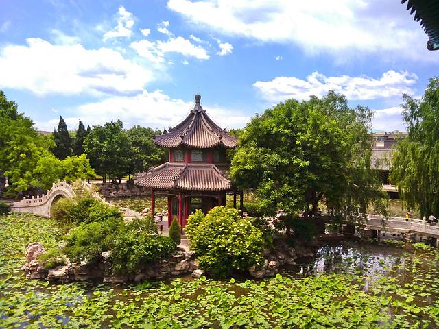 仔细欣赏一个多小时结束,下一个景点是古莲花池,就在总督署斜对面。门票30,60以上老人和学生半价。一进去就发现这个景区远远超出我的预想,是一个文物古迹及园林景观并存的景区,游览内容丰富,观赏价值很强。古莲花池是国家级文物保护单位,是与颐和园齐名的全国十大名园之一。 玲珑别致,小巧秀美,汇集了中国南北古建筑园林风格的精华。