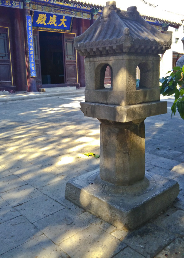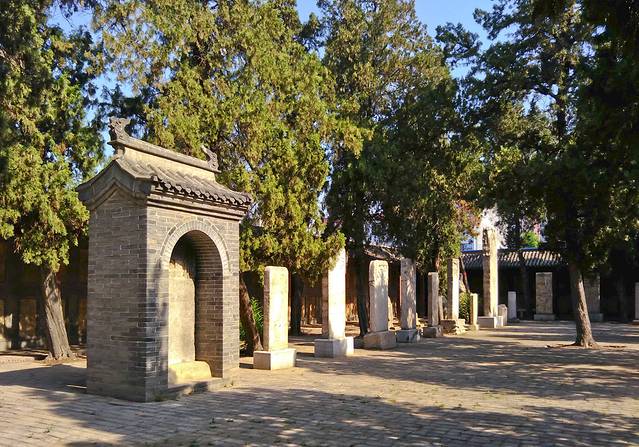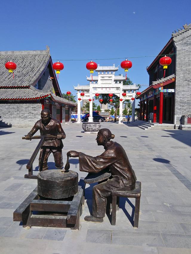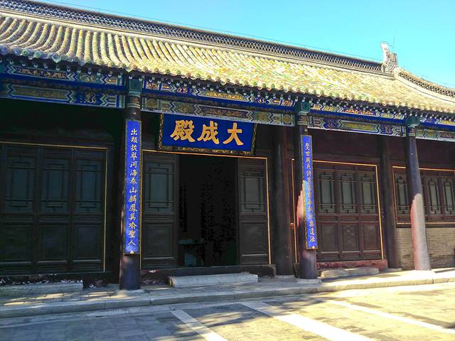 然后穿过那片大型仿古建筑群去找寻不远处的文庙, 河北省文物保护单位,门票10元,60老人学生有半价。当时接近傍晚,院子里有两对新人在拍婚纱照。院子比较大,建筑有大成殿、戟门、棂星门,还有东坡双槐、槐抱春、落星石等景点。后来又修复了大成殿、魁星阁、棂星门、崇圣祠等。