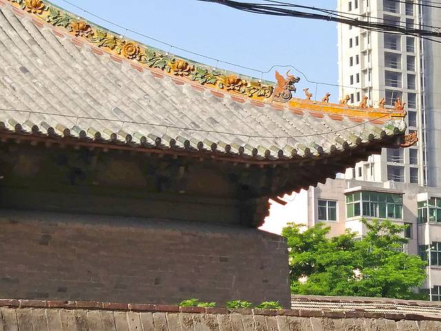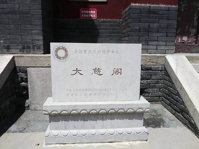猛一见大慈阁建筑群真是漂亮经典,对我很具吸引力的造型。她是古城保定的象征,故有“不到大慈阁,何曾到保定”之说。大慈阁自古为佛教圣地,现为全国重点文物保护单位。元代建筑,有山门、天王殿、钟楼、鼓楼、大慈阁和关帝庙。主要建筑大慈阁建在高高的台基上,重檐三层,歇山顶布黛瓦,阁内左右墙上隐约还有壁画,但很不清楚了,应该已是无法修复了。可登上二楼观赏整个建筑群。大慈阁背后是关帝庙。门票10,60以上老人学生半价。
